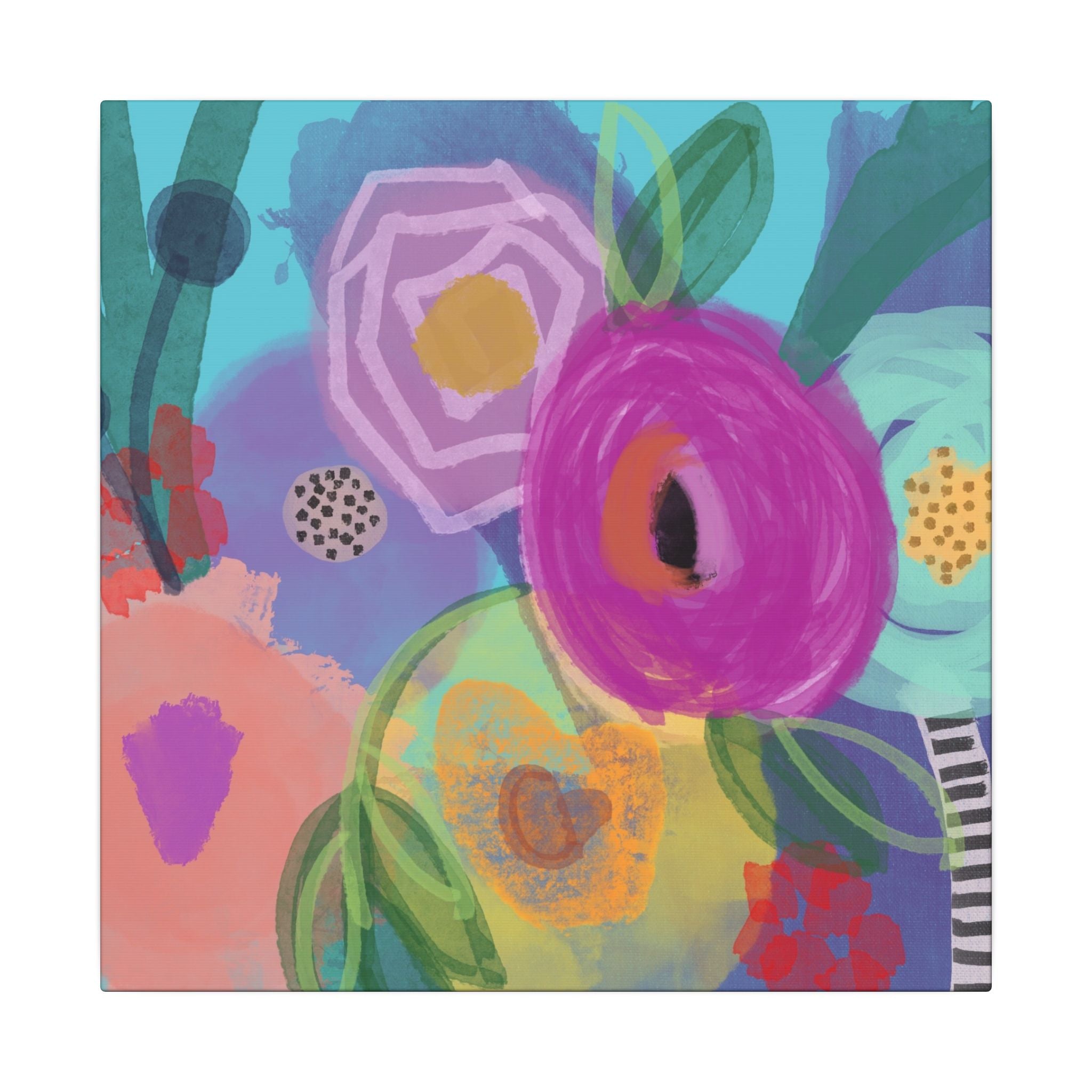 A .75" thick canvas with vibrant and colorful hand-crafted artwork to create a unique and interesting space. Perfect for art enthusiasts and home decorators looking to add a pop of color to their walls. Ideal gift for holidays, birthdays, housewarmings, and special occasions.