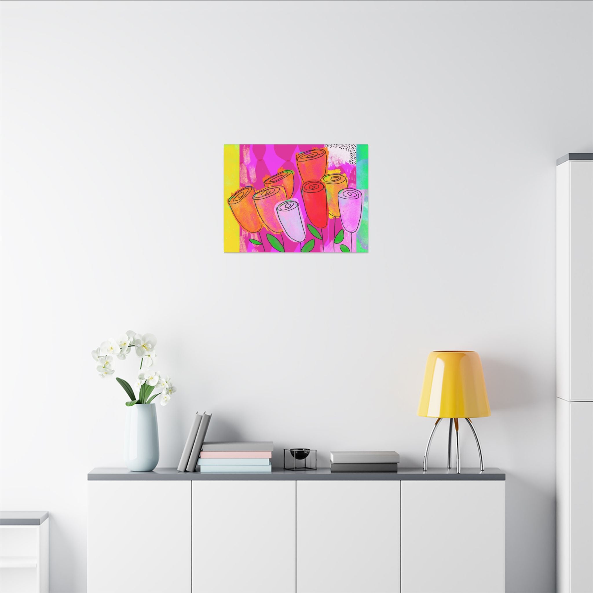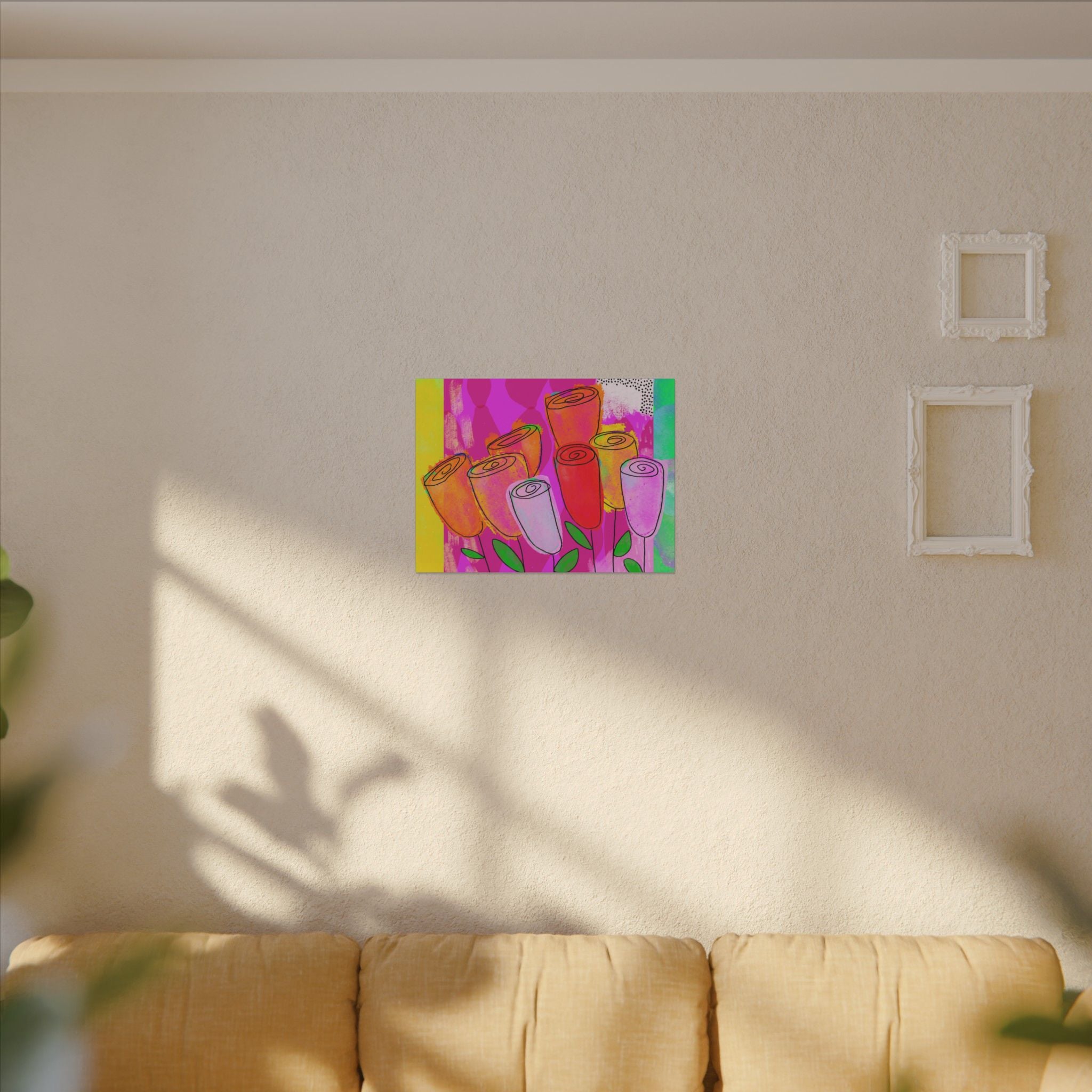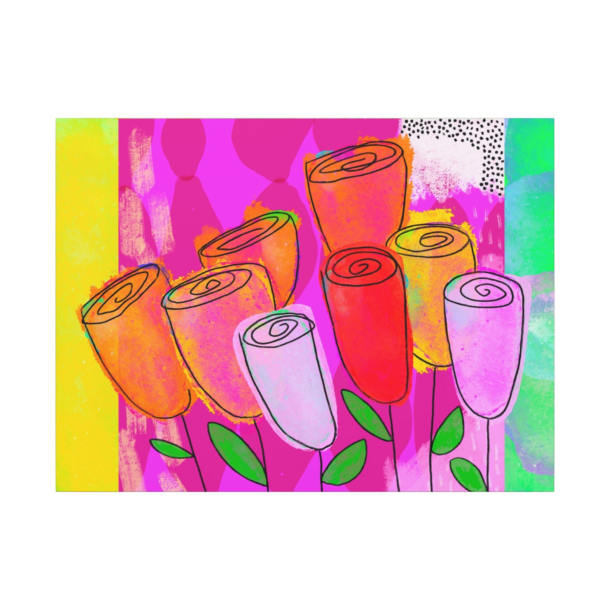 A .75" thick canvas with vibrant and colorful hand-crafted artwork to create a unique and interesting space. Perfect for art enthusiasts and home decorators looking to add a pop of color to their walls. Ideal gift for holidays, birthdays, housewarmings, and special occasions.